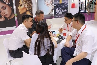 在展会上,公司精心展示了PET灰背/双喷产品、门头布产品以及PVC-Free环保灯布产品等一系列创新成果,还有阻燃丝、尼龙 66 以及抗芯吸丝等独具特色的差异化产品。这些产品甫一亮相,便吸引了众多客户的瞩目,深受新老客户的青睐。