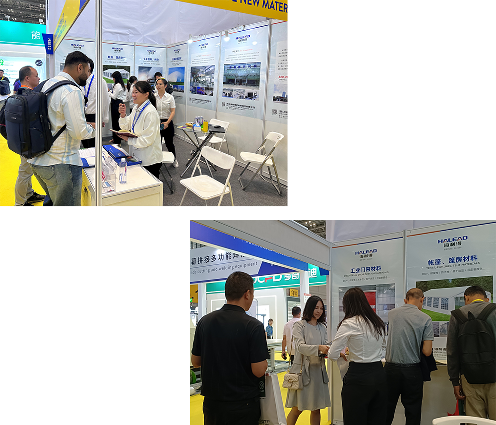 本次展会,我们展示了环保无味、安全可靠的门帘、篷房材料等迭代升级后的优质产品,以及可满足客户多样化需求的多规格压纹产品。同时还隆重推出了3D纹篷房夹黑的新产品,吸引了众多参观者的目光。这些产品不仅体现了我司在技术创新方面的不懈努力,也展示了对环保事业的坚定承诺。